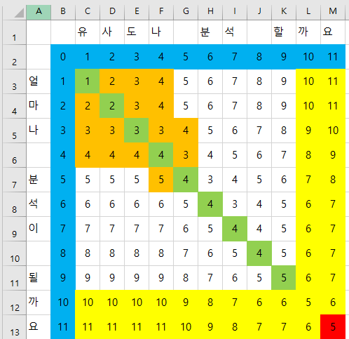 하지만 레벤슈타인거리를 쓰는 이유는 대개 유사 문자열을 찾기 위함이며