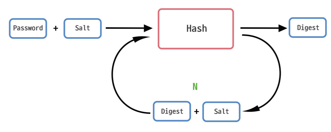 즉 Key Stretching시 salt값은 digest앞에 붙어있으며 변하지 않는다