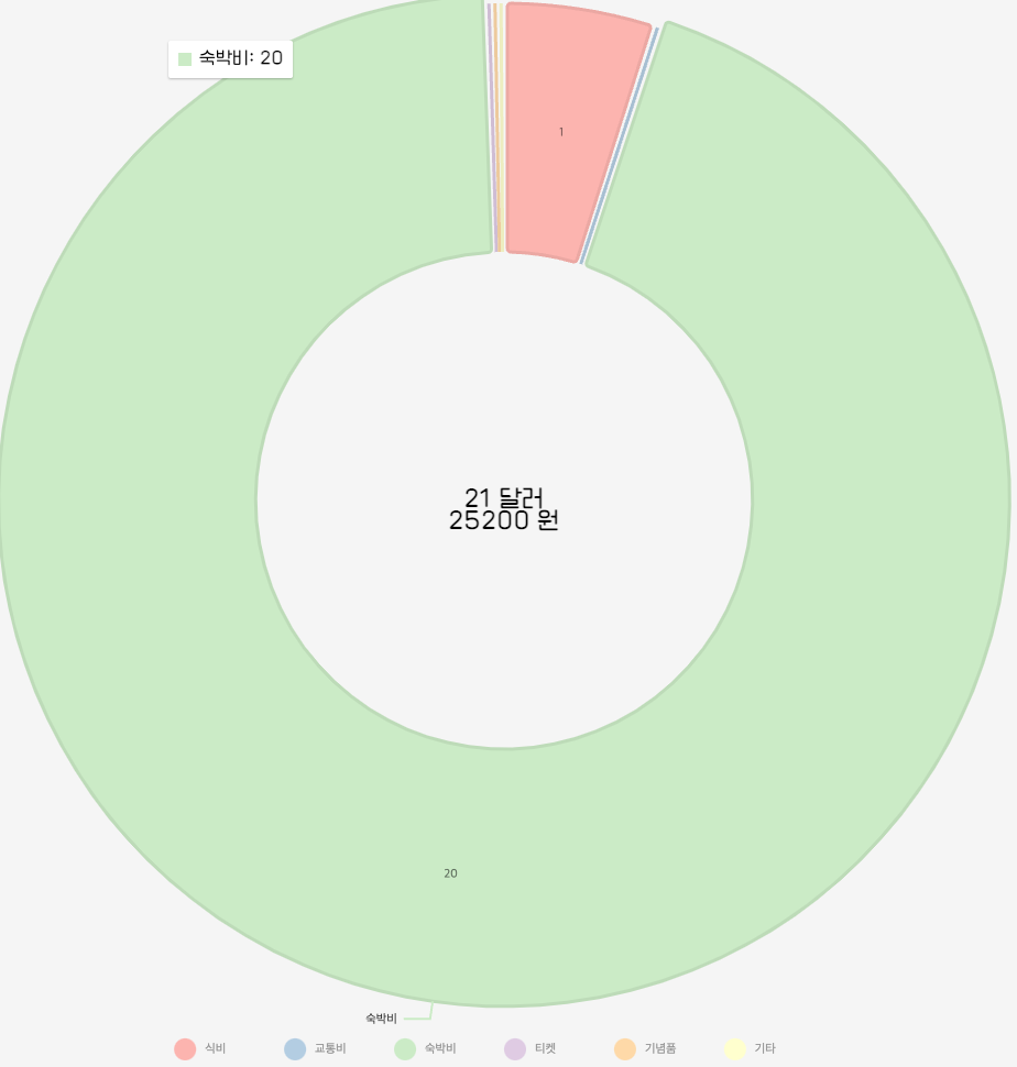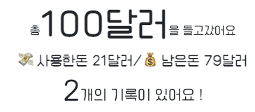 원형 그래프에서 몇달러를 썼고 그것이 한화로 얼마인지를 볼 수 있다.
