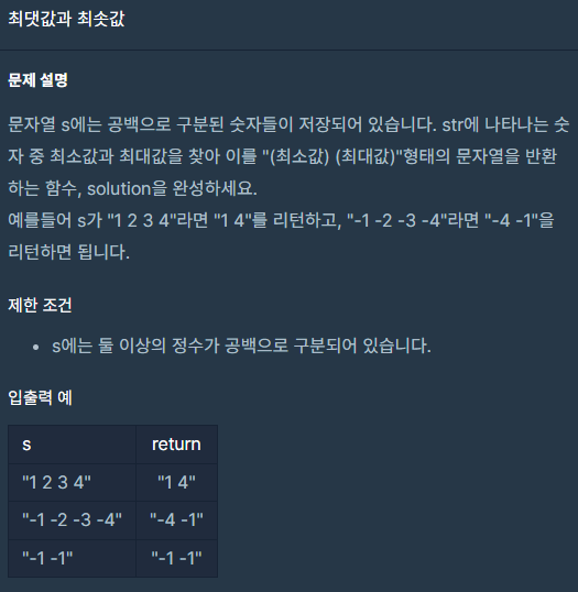 return `${Math.min(...s.split(" ").map((ele) => parseInt(ele)))} ${Math.max(