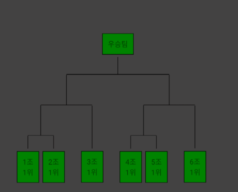 label: '조별 리그전 이후 1위팀 진출 토너먼트 (3팀, 3팀)',