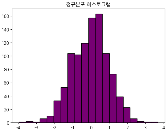 data = np.random.randn(1000) # 정규분포 난수 생성