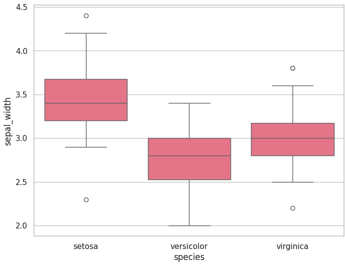 sns.boxplot(x= 'species', y='sepal_width', data=iris)