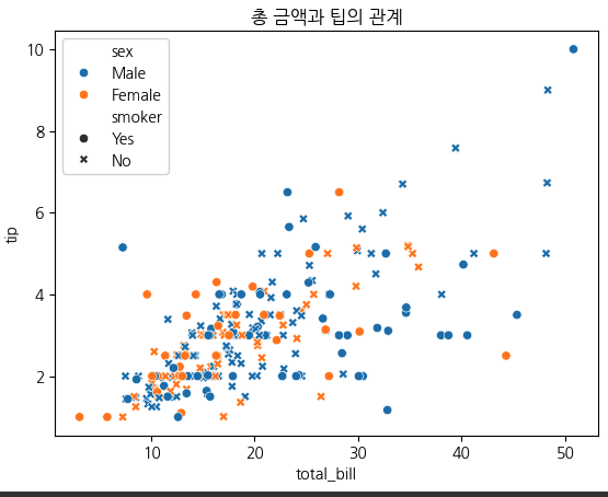 • sns.scatterplot() → 두 변수 간 관계 산점도