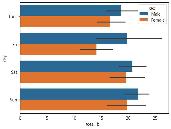 x, y : 각각 x축, y축 컬럼명