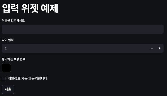 st.title(" 입력 위젯 예제")