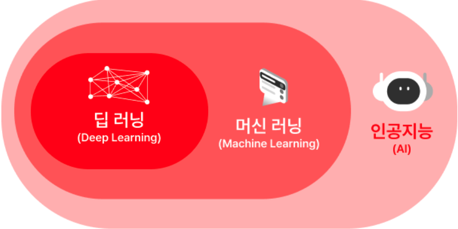 딥러닝(DL): 머신러닝 안에서 신경망을 쌓아 복잡한거 품. 비정형 데이터에 강함