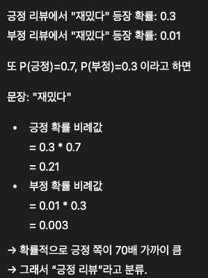 ✔ 형태: “단어가 많이 나왔으면 그 단어 빈도에 비례해 확률이 커짐”