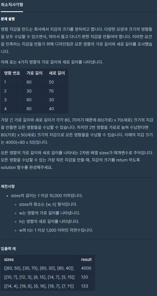 하나의 사각형의 가로와 세로중 더 긴쪽을 예를들어 가로로 몰아놓고