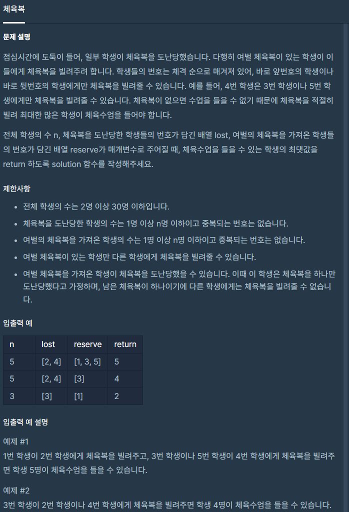 -> 우선 여벌 체육복있는 사람이 잃어버렸을 경우를 먼저 계산한 후에 나머지를 계산함