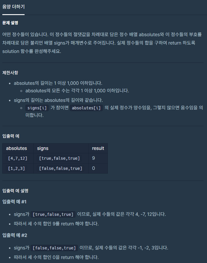 signs[i] ? (sum += absolutes[i]) : (sum -= absolutes[i]);