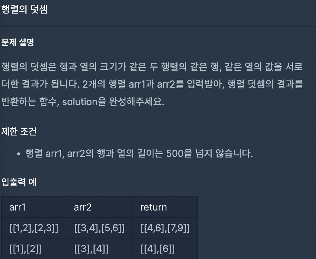 행렬의 덧셈