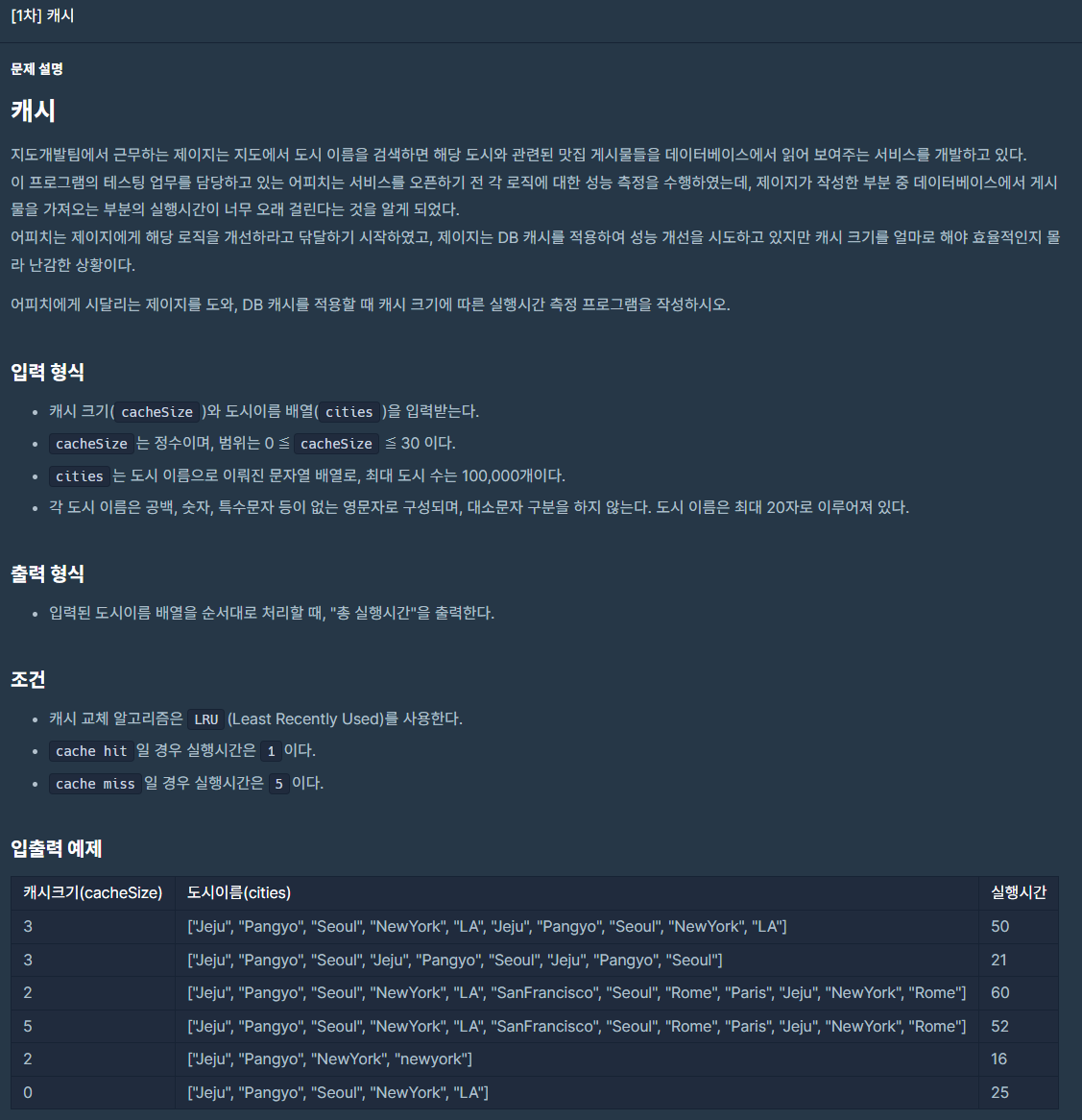 LRU(Least Recently Used)를 선입 후출개념으로 잘못이해해서 막혀있었다